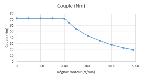 Et comme Mahle fait bien les choses, ils m’ont déjà envoyé la documentation du moteur. Parmi laquelle on peut trouver la courbe caractéristique de couple suivante :