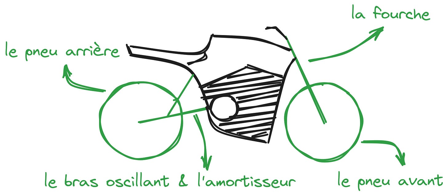 Les éléments de la suspension d’une moto