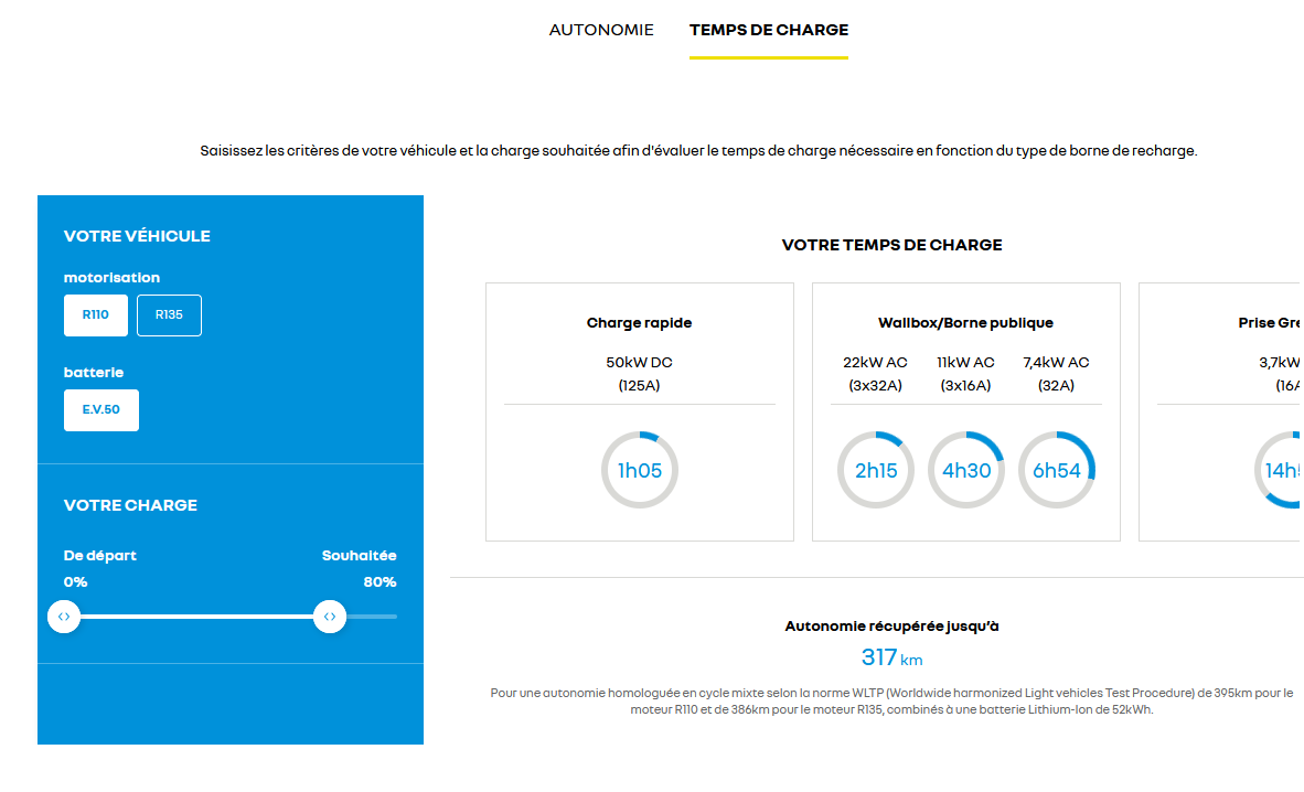 Car quand on se rend sur leur calculateur de temps de recharge en fonction de la puissance, on se rend compte que quelque chose ne tourne pas rond.